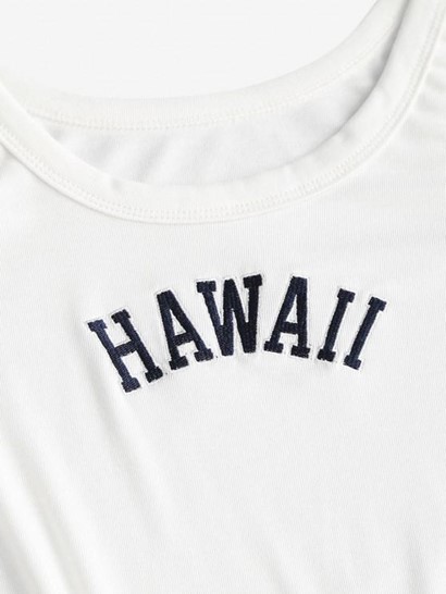 An embroidered HAWAII reminds us that the beach vacay is just around the corner in this soft, stretchy jersey tank dress that’s cut in a slim-fitting silhouette with a relaxing sleeveless design.