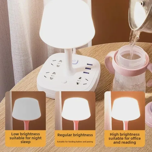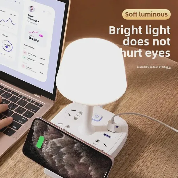 • Multifunctional Design: This modern LED desk lamp combines bright, eye-friendly lighting with built-in USB charging ports and a 3-outlet power strip, perfect for reading, working, or charging devices at your desk or bedside.